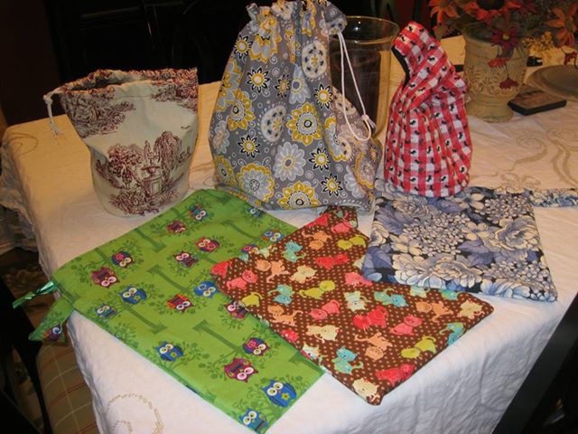 I have also been busy making project bags. The three laying down are drawstring bags. They are basic but some of my favorite. All of my bags have pockets in them. The ant print is the only Japanese knot bag I made. The pattern can be found here. The other bags are a combination of pattern/videos I have seen on YouTube and the web that I have “redone” to fit what I needed.