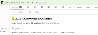 Last year I set a Ravelry goal of 40 projects and completed that. I did not meet my goal of 10,000 yards though. I completed a 7,714 yards but that does not count what it currently knitted or crocheted on my wips.